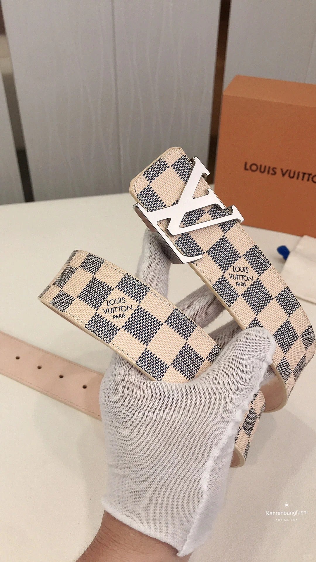 2025 Classic Silver Buckle White Plaid Men's Belt